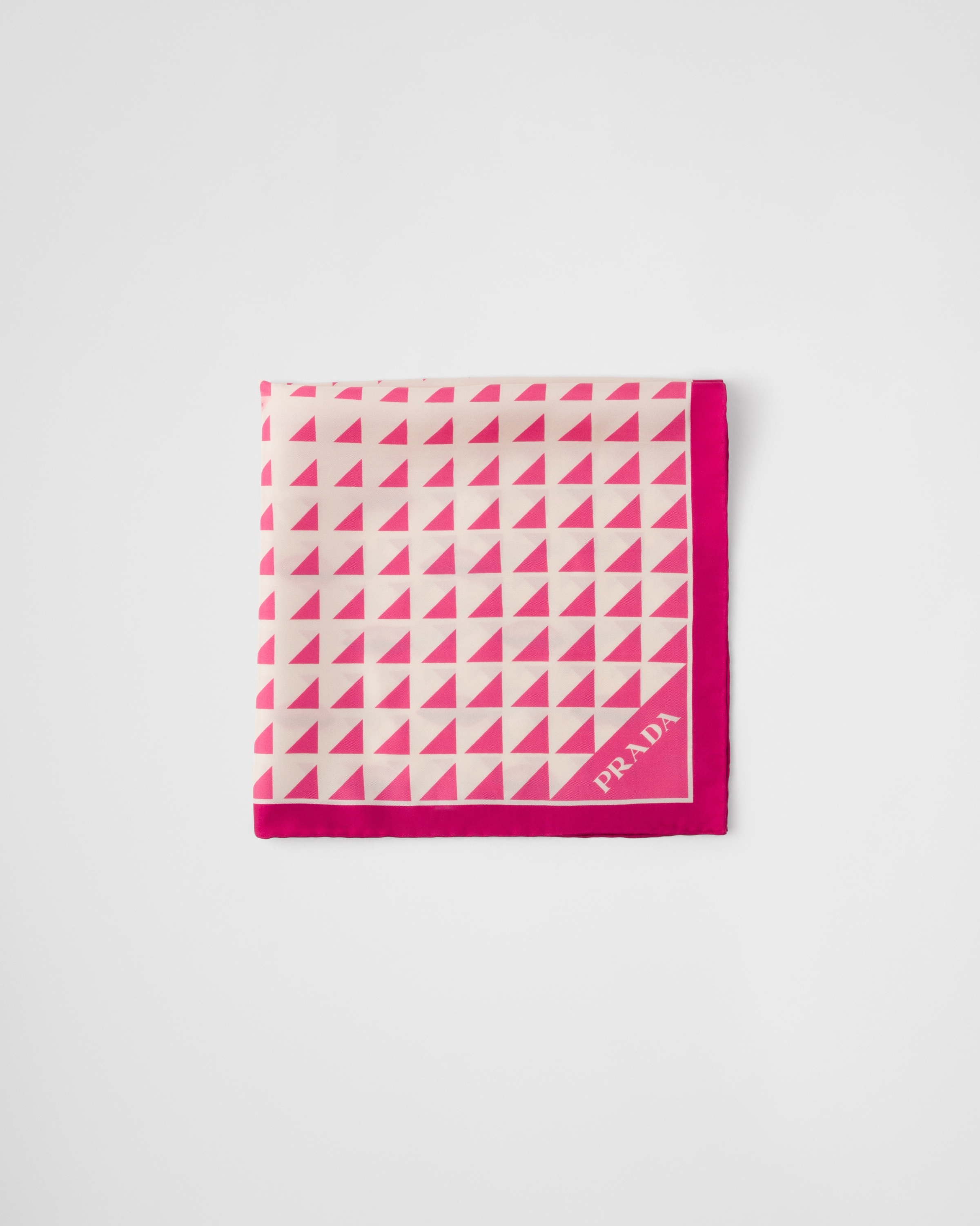 Two contrasting prints blending iconic geometric shapes and archive motifs spark a play of duality and contrasts that characterizes Prada collections, animating this scarf made of fine silk. - Product code: 1FF004_2C7H_F039K - Prints: Degrade and Mouths - Printed logo - Imported Height: 55cm Width: 55cm MATERIALS Main material: Silk