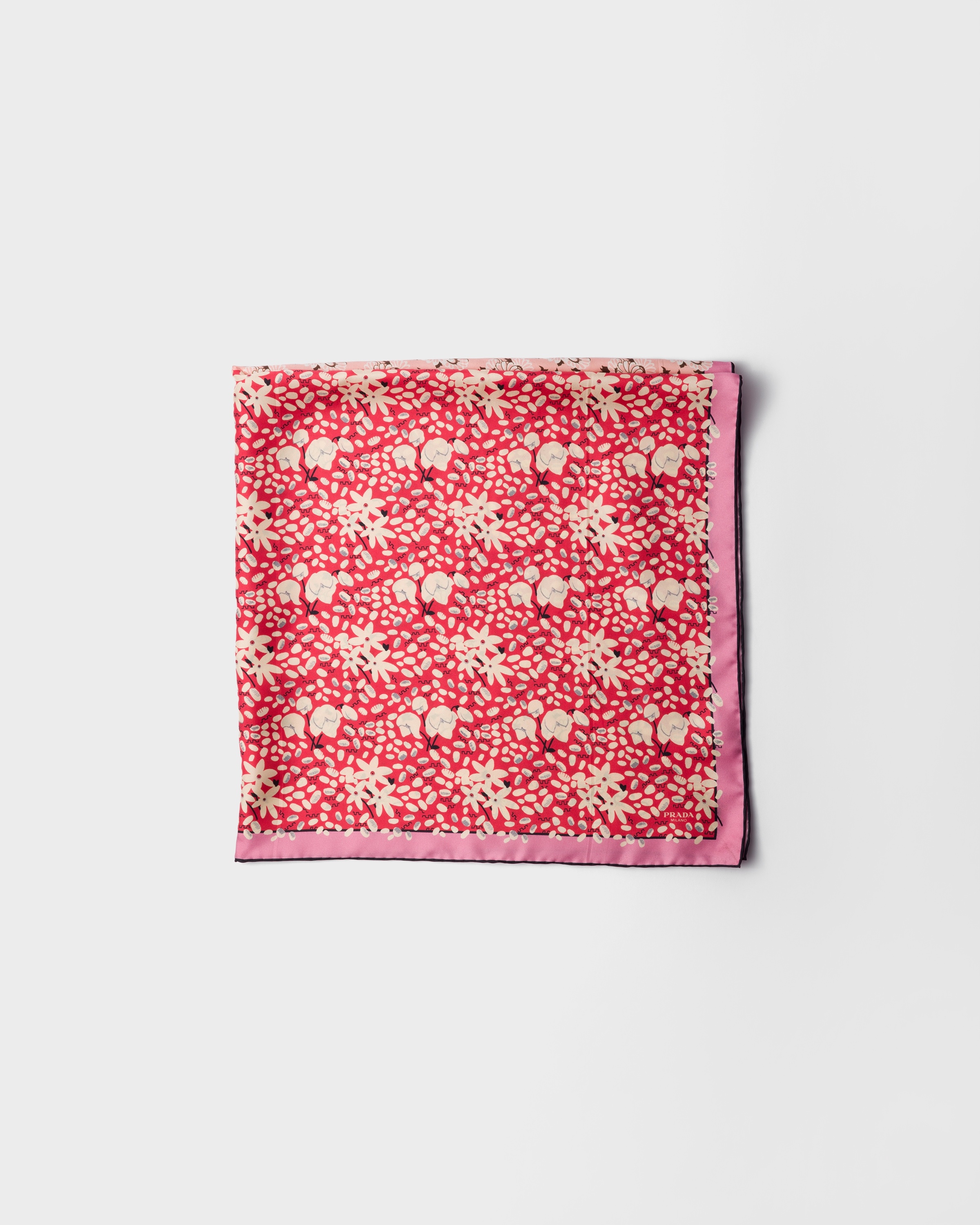 Double Match prints create an unexpected harmony between contrasting graphics, recalling the duality inherent in the Prada aesthetic. Two floral motifs embellish this refined silk twill scarf. - Product code: 1FF001_2HJR_F0X37 - Double Match print: Flowers - Printed logo - Imported Height: 90cm Width: 90cm MATERIALS Main material: Silk