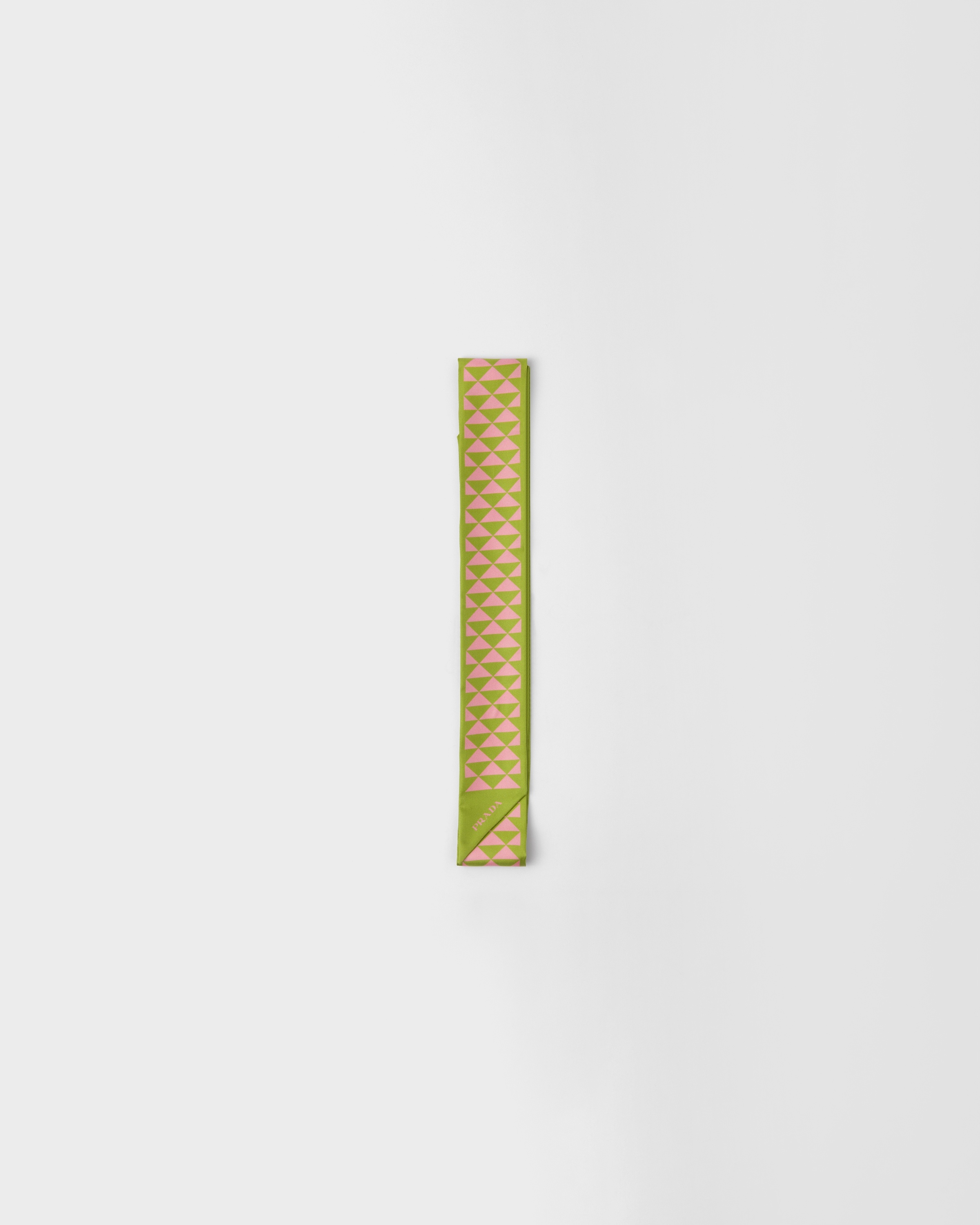 The emblematic Symbole print transforms the sleek lines of the Prada triangle into a modernist geometric pattern that embellishes this skinny scarf made of fine silk twill. - Product code: 1FF025_2DTP_F04F5 - Symbole print - Printed logo - Imported Height: 135cm Width: 6cm MATERIALS Main material: Silk