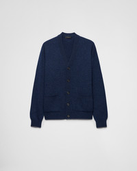 Refined workmanship and sleek details convey timeless allure in this cardigan made of soft regenerated cashmere yarn. The oversized silhouette decorated with the triangle logo has a casual, versatile style. - Product code: UMG283_16ZJ_F0589_S_232 - Plain knit - Oversized fit - Regular shoulder - Ribbed knit cuffs and hem - Knit triangle logo - Front button closure - Patch pockets - Imported - The model is 189 cm tall and wears a size 38 Height: 74cm MATERIALS Main material: 100% recycled cashmere