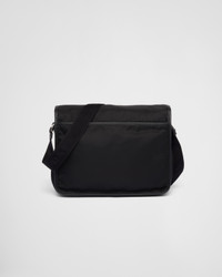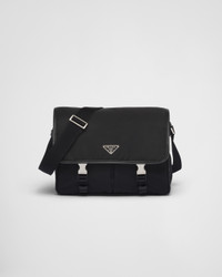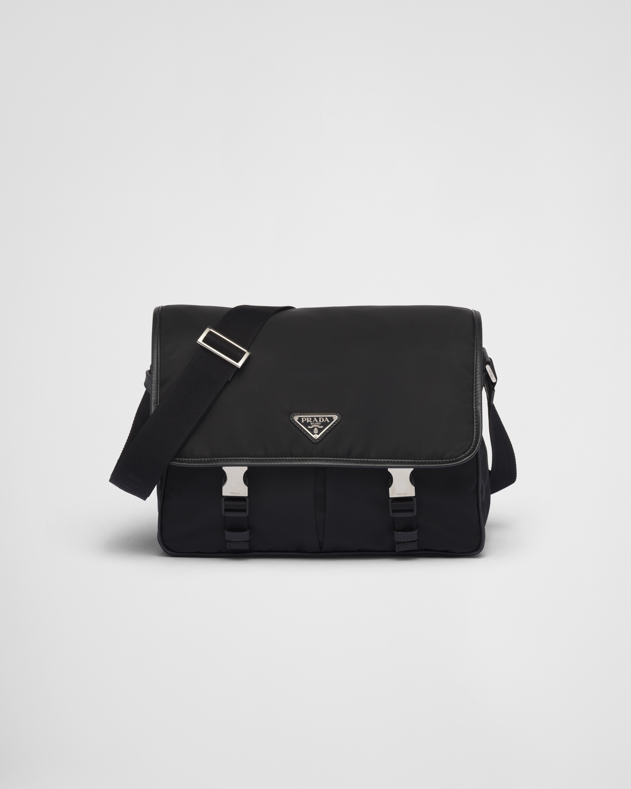 This shoulder bag has a pragmatic design emphasized by the versatility of Re-Nylon, the innovative regenerated nylon material that is an emblem of the brand. The accessory has a functional silhouette defined by leather details and decorated with the iconic enameled metal triangle logo. For sustainable care to preserve the product's characteristics and reduce microfiber shedding, we recommend not washing the item too often. Let the product air out after every use and have it dry cleaned at a specialized ecological dry cleaners. - Product code: 2VD768_2DMH_F0002_V_XLO - Adjustable Re-Nylon shoulder strap - Enameled metal triangle logo on the flap - Flap closure with side-release buckles - External zipper pocket - Lining with two zipper pockets and patch pocket - Logo-print Re-Nylon lining - Imported Height: 24cm Width: 32cm Length: 12cm MATERIALS Main material: Recycled polyamide