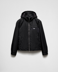This refined and versatile Re-Nylon blouson jacket with a minimalist design is completed with functional details that emphasize the sporty and contemporary style of the garment. For sustainable care to preserve the product's characteristics and reduce microfiber shedding, we recommend not washing the item too often. Let the product air out after every use and have it dry cleaned at a specialized ecological dry cleaners. - Product code: SGC856_1WQ8_F0002_S_OOO - Regular fit - Stand-up collar with removable hood - Straight sleeves - Zipper closure - Welt pockets - Buttoned cuffs - Regular shoulder - Straight hem - Elasticized drawstring - Lined and padded - Enameled metal triangle logo on the front - The fabric is made with regenerated yarn obtained from recycled plastic materials collected in the ocean - Imported - The model is 190 cm tall and wears a size 48 Height: 65cm MATERIALS Main material: 100% recycled polyamide