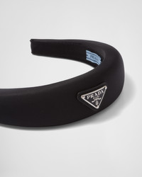 A sophisticated, hallmark accessory of the Prada collections, the oversized, rounded, snug headband is always reinterpreted in new ways. Featuring an iconic, enameled-metal triangle logo, it is made from Re-Nylon, a regenerated nylon yarn crafted from recycled, purified plastic materials recovered from the oceans, fishing nets and fabric fibers. For sustainable care to preserve the product's characteristics and reduce microfiber shedding, we recommend not washing the item too often. Let the product air out after every use and have it dry cleaned at a specialized ecological dry cleaners. - Product code: 1IH019_2DMI_F0002 - Enameled-metal triangle logo - Imported Height: 4cm MATERIALS Main material: Recycled polyamide