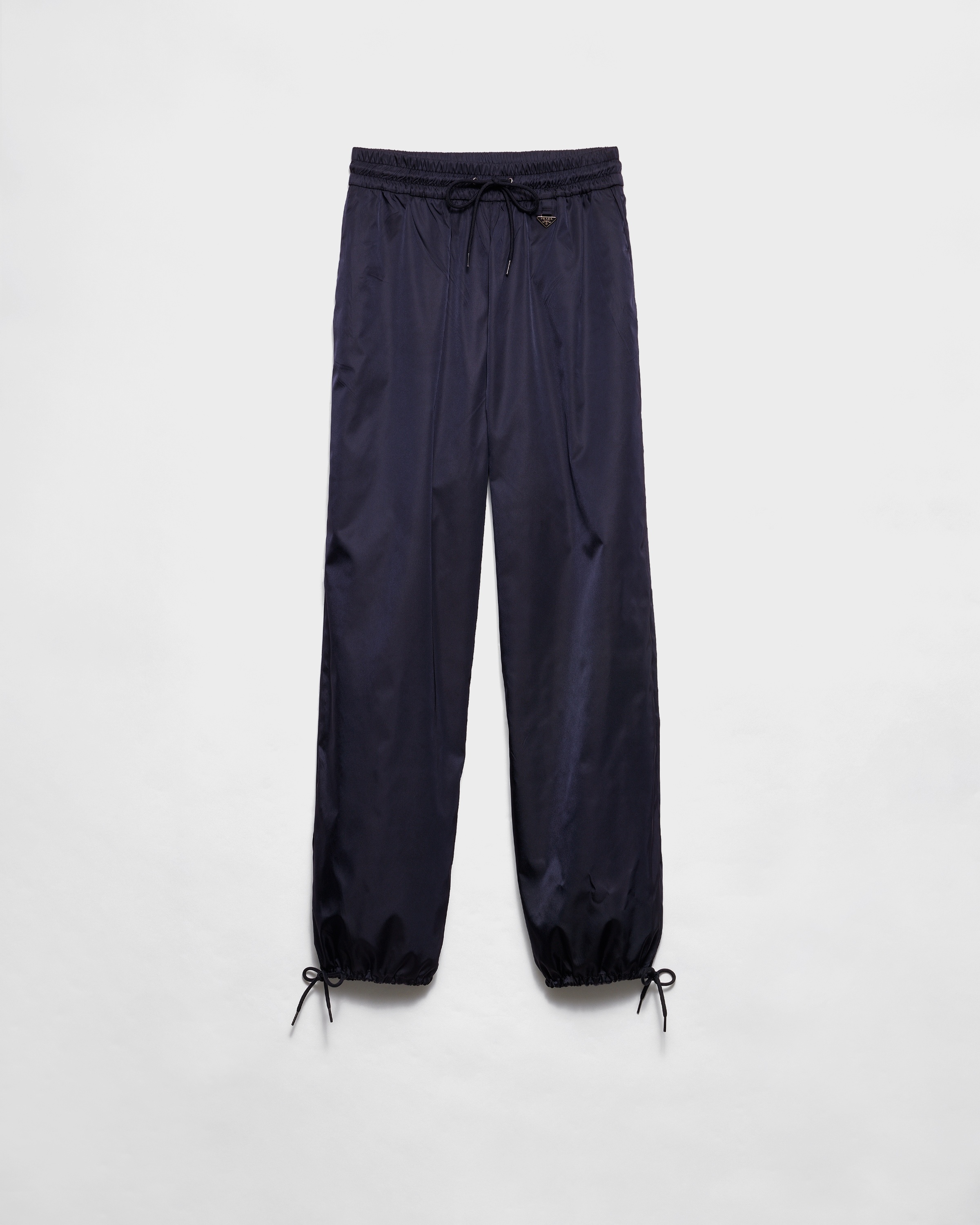Techwear inspired this reinterpretation of joggers, presented in a light Re-Nylon design defined by contemporary, sporty details. For sustainable care to preserve the product's characteristics and reduce microfiber shedding, we recommend not washing the item too often. Let the product air out after every use and have it dry cleaned at a specialized ecological dry cleaners. - Product code: 22T940_1WQ8_F0SVF_S_OOO - Unlined garment - Drawstring waist - Angled front slash pockets - Back patch pocket - Drawstring hem - Enameled metal triangle logo - Pressed garment - Imported - The model is 178 cm tall and wears a size 38 Height: 107cm MATERIALS Main material: 100% recycled polyamide