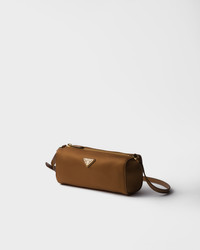 The refined design of this pouch sums up Prada codes with a sleek geometric silhouette made of Re-Nylon. An elegant slim leather handle completes the accessory decorated with the iconic triangle. For sustainable care to preserve the product's characteristics and reduce microfiber shedding, we recommend not washing the item too often. Let the product air out after every use and have it dry cleaned at a specialized ecological dry cleaners. - Product code: 1NE058_2C05_F0134 - Zipper closure - Enameled metal triangle logo - Adjustable leather handle - Logo-print Re-Nylon lining with zipper pocket - Imported Height: 9cm Width: 22cm Length: 7.5cm MATERIALS Main material: Recycled polyamide