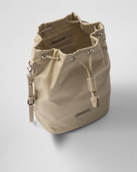 Made of Prada's innovative Re-Nylon fabric produced from recycled plastic materials collected in the ocean, this drawstring pouch stands out for its practical attitude highlighted by its removable leather wristlet. For sustainable care to preserve the product's characteristics and reduce microfiber shedding, we recommend not washing the item too often. Let the product air out after every use and have it dry cleaned at a specialized ecological dry cleaners. - Product code: 1NS369_R067_F0F24 - Drawstring closure - Enameled metal triangle logo - Removable leather wristlet - Re-Nylon lining - Imported Height: 23cm Width: 15.5cm Length: 10cm MATERIALS Main material: Recycled polyamide