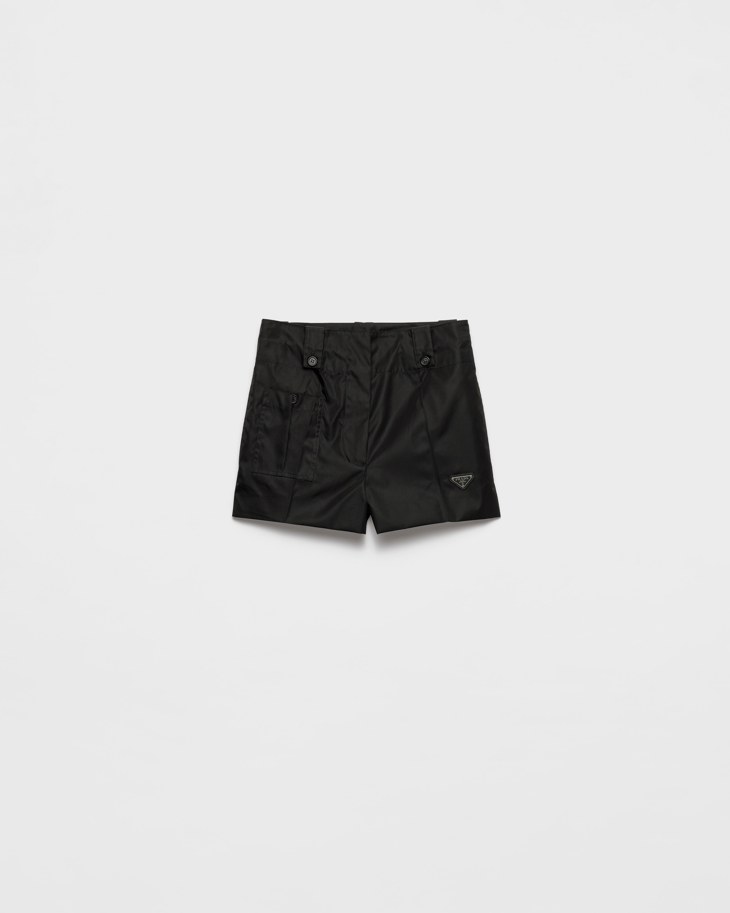 These shorts with a functional, sporty design are made of Re-Nylon, the regenerated nylon fabric obtained from recycled plastic materials collected in the ocean. The lightweight silhouette with drawstring waist is completed by the enameled metal triangle logo. For sustainable care to preserve the product's characteristics and reduce microfiber shedding, we recommend not washing the item too often. Let the product air out after every use and have it dry cleaned at a specialized ecological dry cleaners. - Product code: 22X936_1WQ8_F0002_S_OOO - Unlined - Drawstring waist - Concealed zipper fly with hook - Enameled metal triangle logo - Side pocket with button - Back pockets with flap and button - Belt loops with buttonholes and buttons - Imported - The model is 176 cm tall and wears a size 38 Height: 36cm MATERIALS Main material: 100% recycled polyamide