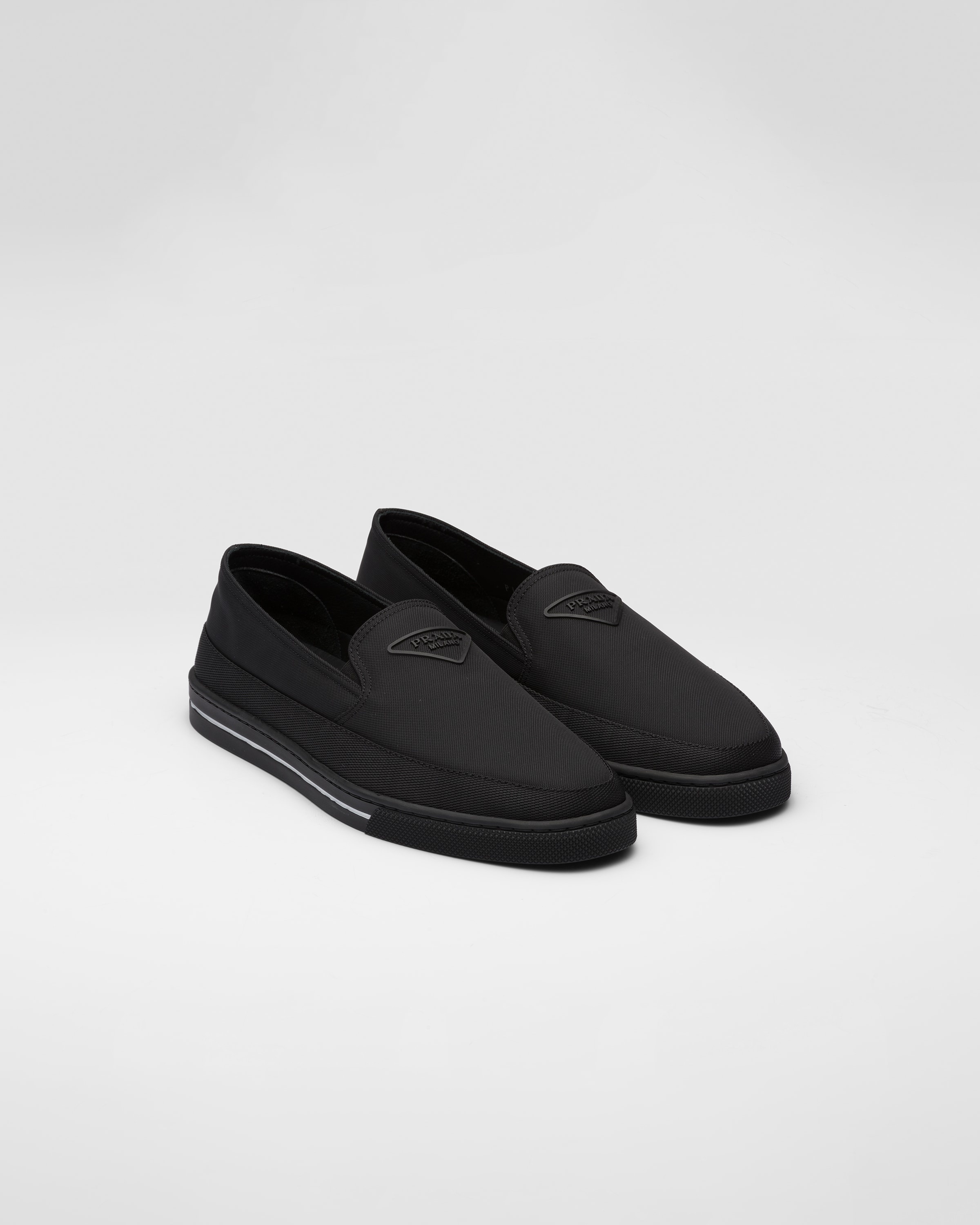 These nylon slip-ons are defined by a modern, minimalist design. The triangle logo is continuously reinterpreted in new ways. Here, it is featured in embossed rubber. This product does not contribute to the SEA BEYOND educational program. - Product code: 2S2964_71L_F0002 - Embossed rubber triangle logo - Lightweight foam soles with logo heels - 25 mm - Removable leather-covered insole - Imported MATERIALS Main material: Polyamide polyester polyurethane