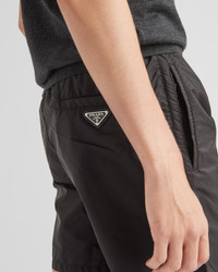 Made of innovative Re-Nylon, these swim trunks stand out for their sporty design enhanced by the iconic enameled metal triangle logo and completed with a Re-Nylon pouch. For sustainable care to preserve the product's characteristics and reduce microfiber shedding, we recommend not washing the item too often. Let the product air out after every use and have it dry cleaned at a specialized ecological dry cleaners. - Product code: UB333_1WQ9_F0002_S_231 - Elasticized drawstring waistband - Enameled metal triangle logo - Mesh lining - Welt pockets - Re-Nylon pouch with fabric triangle - Imported - The model is 190 cm tall and wears a size 48 Height: 41cm MATERIALS Main material: 100% recycled polyamide