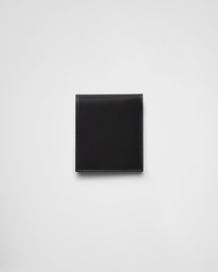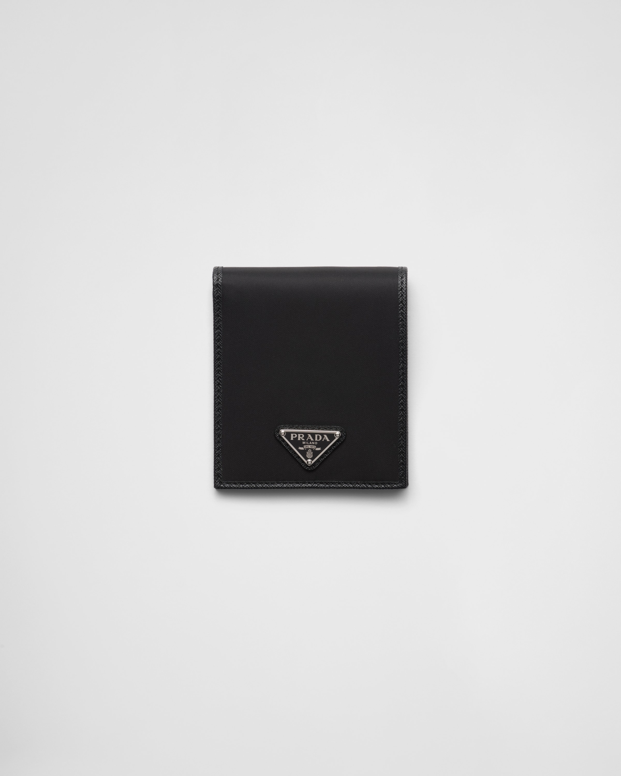 This wallet with a sleek design is made of Re-Nylon, the innovative regenerated nylon fabric obtained from recycled plastic materials collected in the ocean. The accessory, embellished with Saffiano leather details and interior, has several card slots and two bill compartments. This product does not contribute to the SEA BEYOND educational program. - Product code: 2MO513_2DMH_F0002 - Enameled metal triangle logo - Eight card slots - Two bill compartments - Moire and Saffiano leather lining - Imported Height: 9.5cm Width: 11cm MATERIALS Main material: Recycled polyamide