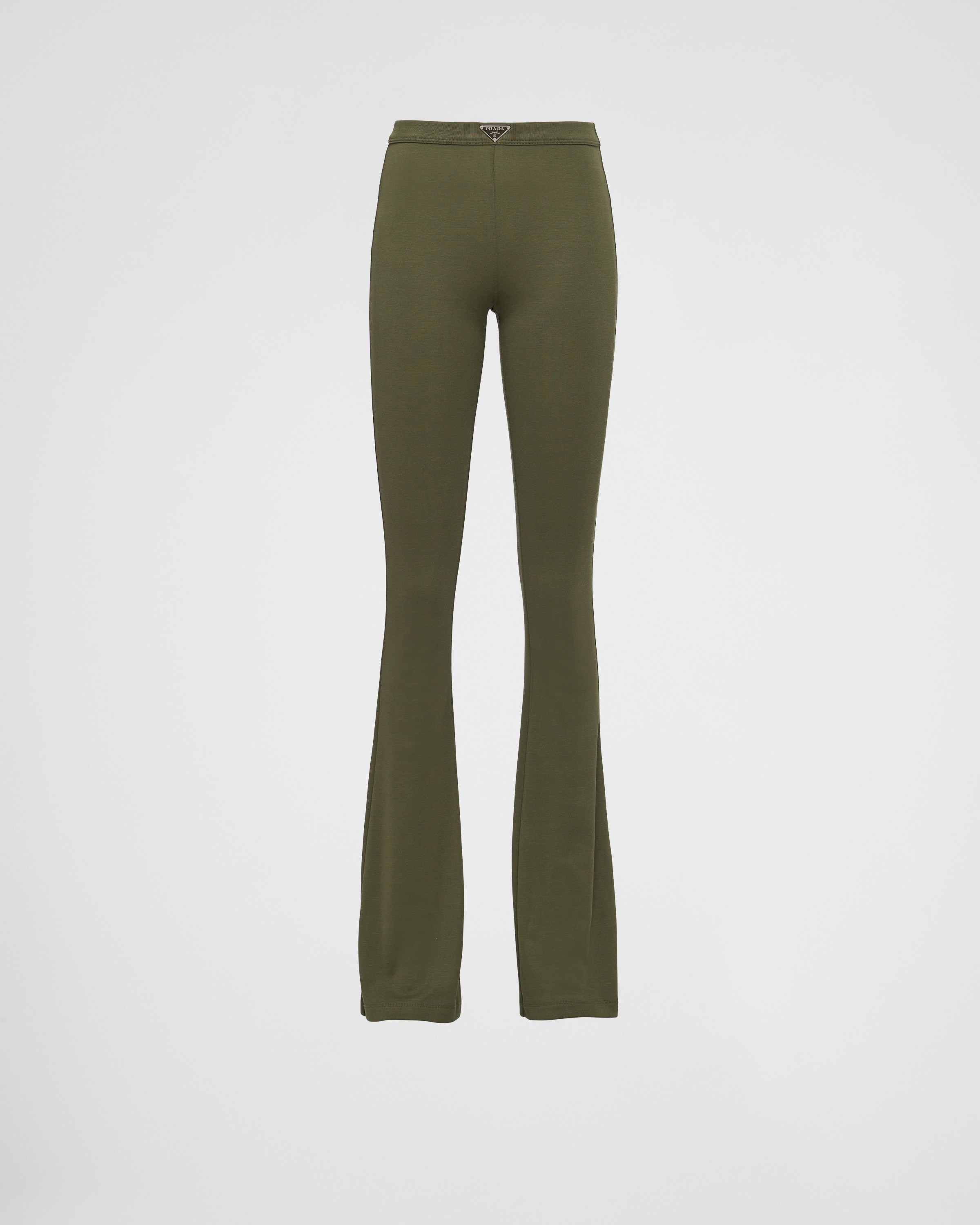 These cotton pants characterized by the ribbed knit has a skinny fit that culminates in a wide flared hem. The enameled metal triangle logo embellishes the casual style with an iconic touch. - Product code: 32154_14L0_F0334_S_OOO - Flared leg - Enameled metal triangle logo - Elasticized waistband - Imported Height: 115cm MATERIALS Main material: 100% cotton