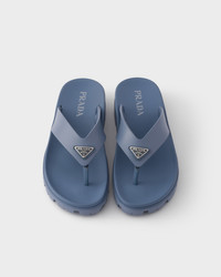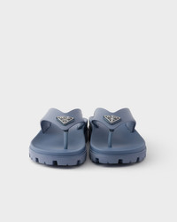 These rubber thong sandals have a contemporary silhouette with sleek details. The style, enriched by the iconic enameled metal triangle logo, is characterized by a rubber sole with lug tread that adds a sporty touch. - Product code: 2Y3130_3LKK_F0D57_F_G001 - Enameled metal triangle logo applied on the upper - Rubber sole with lug tread - Heel height 025 mm - Leather-covered insole - Imported MATERIALS Main material: Calfskin