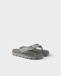 These rubber thong sandals have a contemporary silhouette with sleek details. The style, enriched by the iconic enameled metal triangle logo, is characterized by a rubber sole with lug tread that adds a sporty touch. - Product code: 2Y3130_3LKK_F0276_F_G000 - Enameled metal triangle logo applied on the upper - Rubber sole with lug tread - Heel height 025 mm - Leather-covered insole - Imported MATERIALS Main material: Calfskin