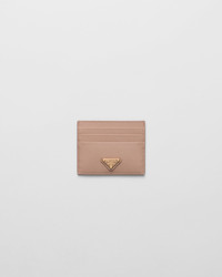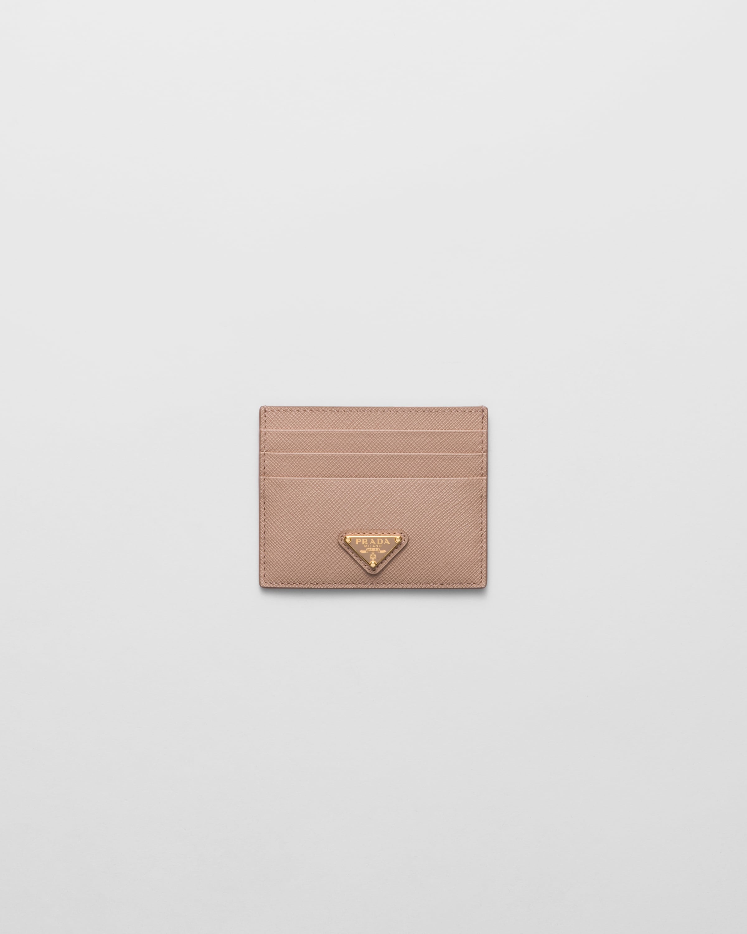 The unmistakable texture of Saffiano leather characterizes this sleek card holder. The accessory with six card slots is decorated with a tonal enameled metal triangle logo. - Product code: 1MC025_QHH_F0236 - Enameled metal triangle logo - Six card slots - One inside pocket - Moire and Saffiano leather lining - Imported Height: 8cm Width: 10cm MATERIALS Main material: Calfskin