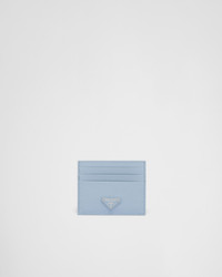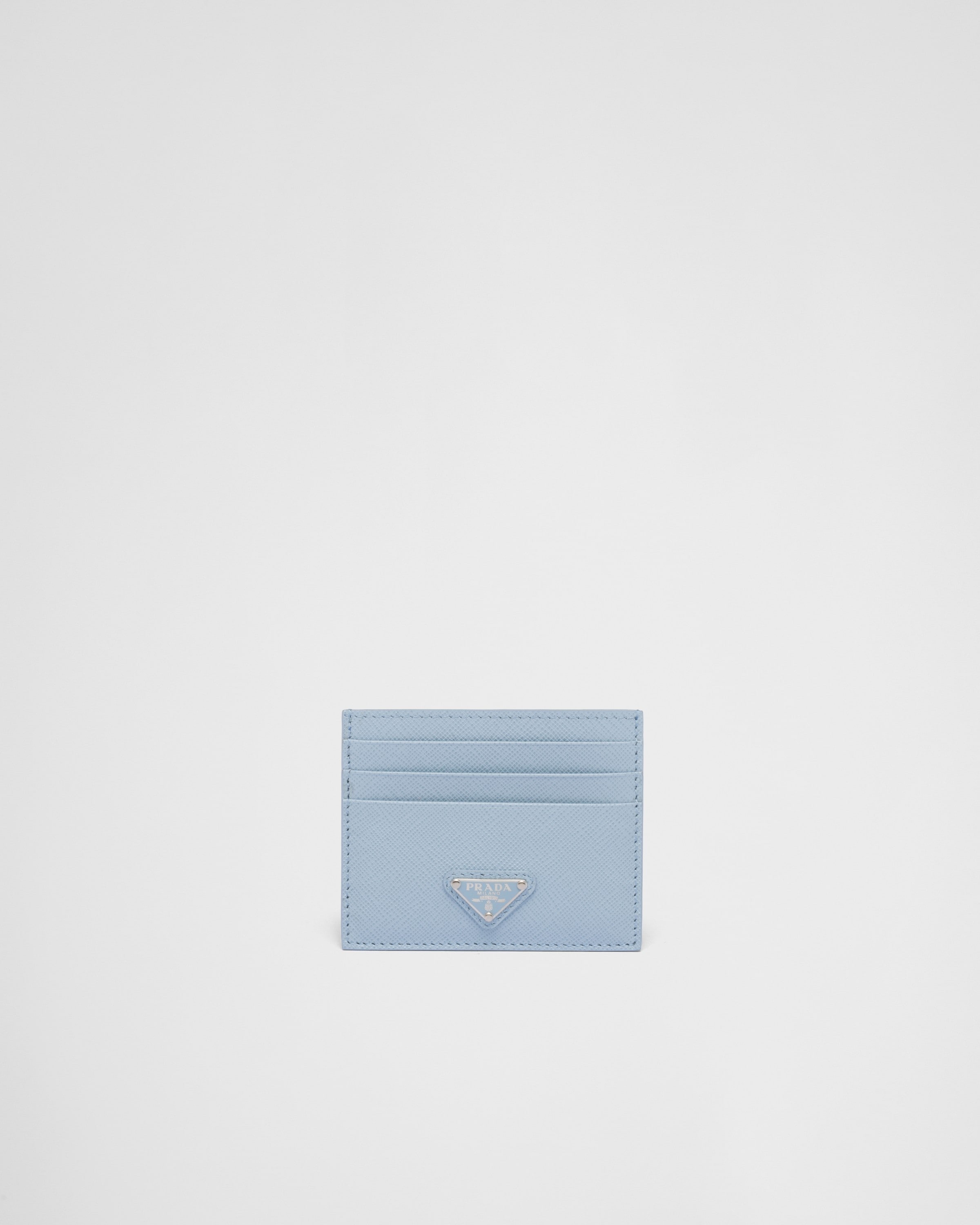 The unmistakable texture of Saffiano leather characterizes this sleek card holder. The accessory with six card slots is decorated with a tonal enameled metal triangle logo. - Product code: 1MC025_QHH_F0EMZ - Enameled metal triangle logo - Six card slots - One inside pocket - Moire and Saffiano leather lining - Imported Height: 8cm Width: 10cm MATERIALS Main material: Calfskin