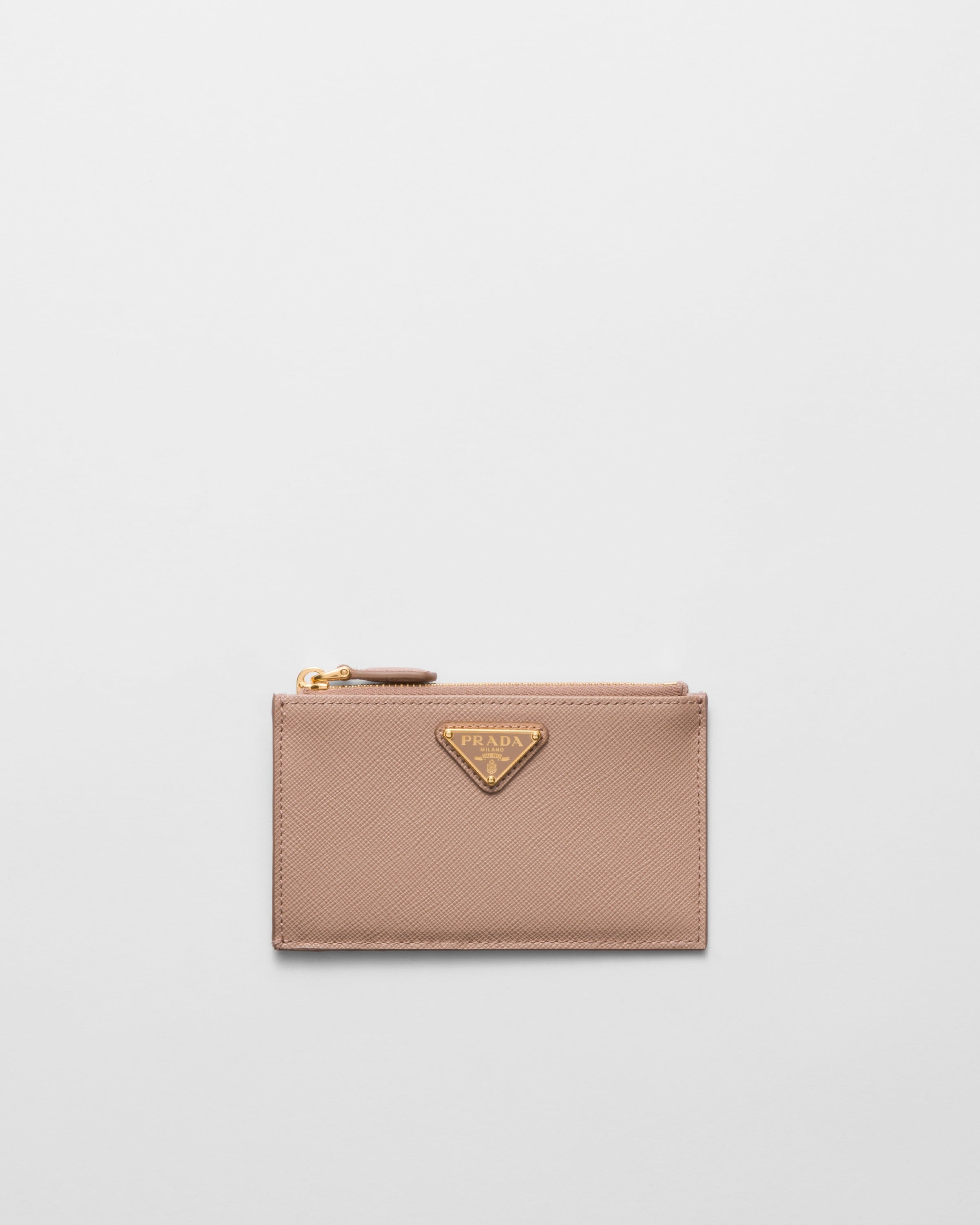 The distinctive crosshatch texture of the brand's iconic Saffiano leather characterizes this card holder with sleek lines. The accessory with five card slots is decorated with the metal triangle logo. - Product code: 1MC086_QHH_F0236 - Zipper closure - Enameled metal triangle logo - Five card slots - Leather lining - Imported Height: 8cm Width: 13cm MATERIALS Main material: Calfskin