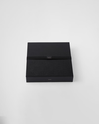 The board and stones for Go, an ancient board game originally from China, are contained in a luxurious box made of Saffiano leather: a leather of superior quality defined by its crosshatch pattern and waxed finish. Saffiano leather, an iconic Prada material, is synonymous with luxury and is identified with traditional Italian leather goods production. - Product code: 2SG008_0DC_F0002 - With Go stone set - With goban board - Metal lettering logo - Imported - Leather
