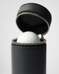 This elegant Saffiano leather case for golf accessories is completed by the distinctive triangle logo that embellishes the sleek, compact design. - Product code: 2XD066_2C7D_F0002 - With snap hook - Enameled metal triangle logo - Imported Height: 13cm Width: 6cm MATERIALS Main material: Calfskin
