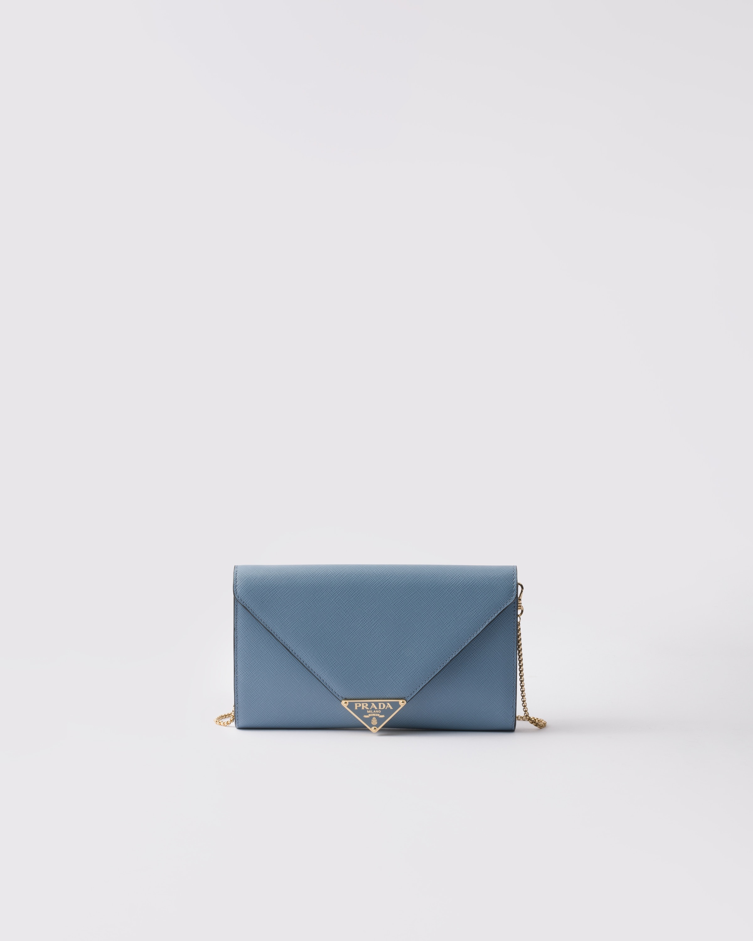 The signature crosshatched texture of Saffiano leather elevates this mini bag. The silhouette blends sleek lines with Prada’s codes, resulting in a sophisticated accessory adorned with the iconic triangle that stands out on the front closure and the elegant shoulder strap. - Product code: 1BP051_NZV_F0683_V_5TO - Detachable, adjustable chain shoulder strap, length: 115 cm - Zipper pocket on the back - Metal hardware - Enameled metal triangle logo closure - Magnetic flap closure - Nappa leather lining with patch pocket and card slots - Imported Height: 11.5cm Width: 20cm MATERIALS Main material: Calfskin