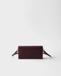 Saffiano leather, an emblematic material of Prada collections, stands out for its crosshatch pattern with waxed finish that gives each design versatile, elegant charm. This mini-bag has a sleek yet refined geometric shape, illuminated by the metal hardware and decorated with the iconic enameled metal triangle logo. - Product code: 1NF059_2DB3_F0007 - Magnetic clasp - Enameled metal triangle logo - Detachable, adjustable leather shoulder strap - Nappa leather interior with card slots - Imported Height: 9.5cm Width: 18cm Length: 3cm MATERIALS Main material: Calfskin