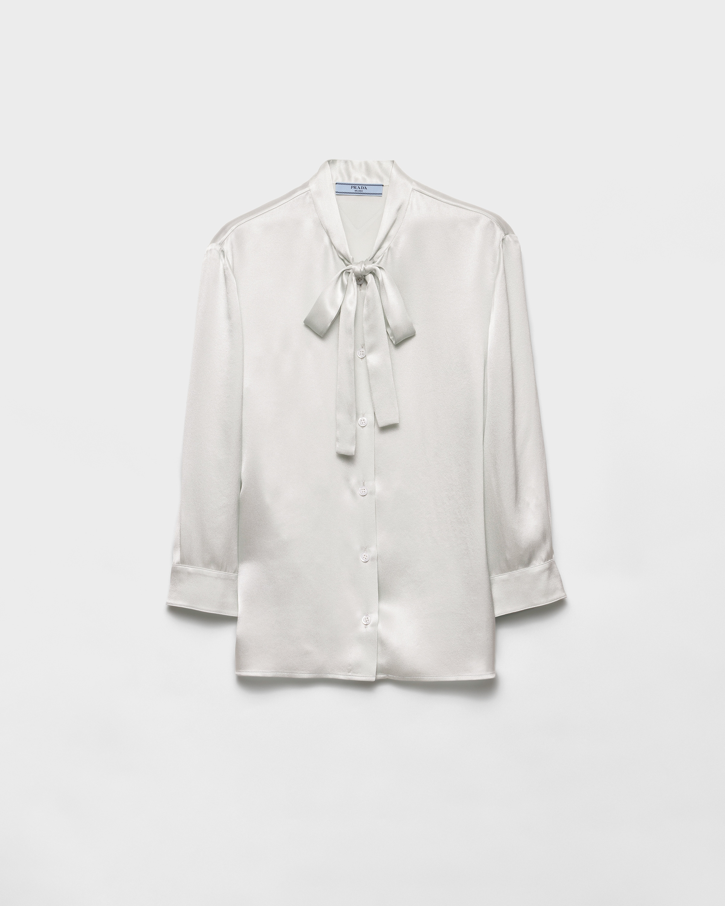This light, fluid shirt made of satin crepe has a sophisticated silhouette enriched by the refined scarf collar. - Product code: P468I_16MV_F064W_S_OOO - Straight fit - Scarf collar - Front button closure - Long sleeves - Fabric triangle logo - Imported Height: 57cm MATERIALS Main material: 100% silk