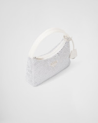 This mini hobo bag, an iconic Prada style, comes in a luxurious satin version studded with crystals and decorated with the emblematic enamel triangle logo. - Product code: 1BC515_2AWL_F0009_V_OOO - All-over synthetic crystals - Zipper closure - Enameled metal triangle logo - Silk satin lining - Imported Height: 17cm Width: 22cm Length: 6cm MATERIALS Main material: Silk viscose