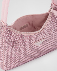 This mini hobo bag, an iconic Prada style, comes in a luxurious satin version studded with crystals and decorated with the emblematic enamel triangle logo. - Product code: 1BC515_2AWL_F0E18_V_OOO - All-over synthetic crystals - Zipper closure - Enameled metal triangle logo - Silk satin lining - Imported Height: 17cm Width: 22cm Length: 6cm MATERIALS Main material: Silk viscose