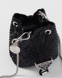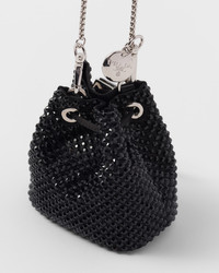 This precious and sophisticated satin mini-pouch covered in crystals plays with elegant, sparkling details. The accessory, which comes with a removable chain shoulder strap, is decorated with the enameled metal triangle logo that accents the drawstring closure - Product code: 1NR16M_2AWL_F0002 - Drawstring closure - Enameled metal triangle logo on closure - Removable chain shoulder strap - Logo-pri9nt nylon lining - Imported Height: 9.5cm Width: 9cm Length: 6cm MATERIALS Main material: Silk viscose