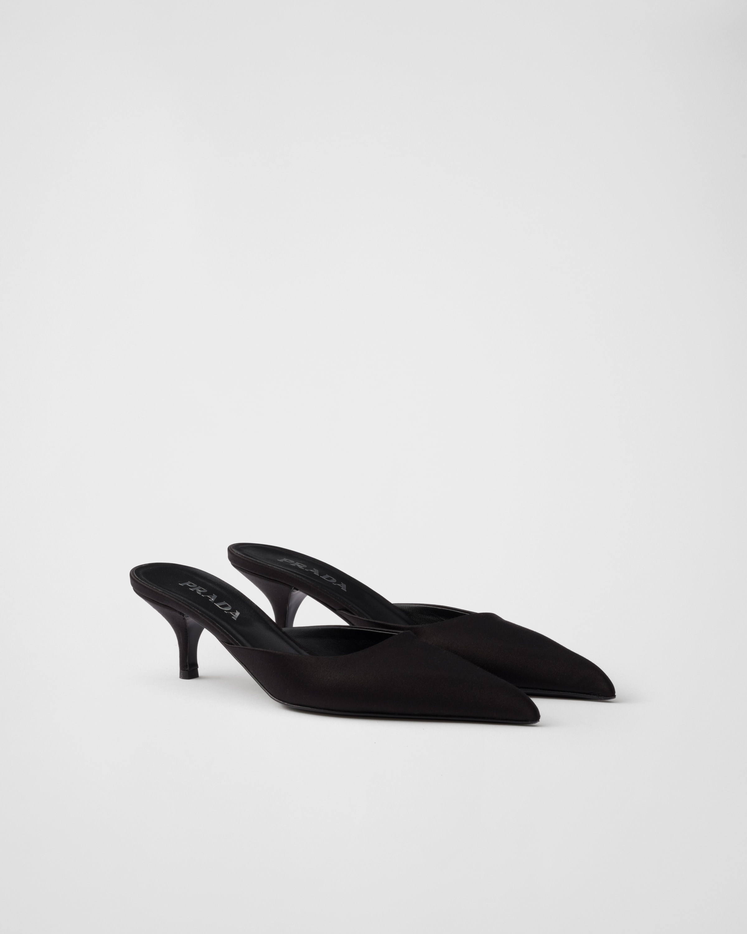 These sophisticated, delicate mules with timeless elegance have a tapered silhouette with precise lines. The refined simplicity of the design is enhanced by the lustrous satin finish that enriches the footwear with a refined, modern touch. - Product code: 1I975N_049_F0002_F_B055 - Leather sole with rubber heel tip - Metal lettering logo - Satin-covered heel, height 55 mm. - Imported MATERIALS Main material: Silk viscose