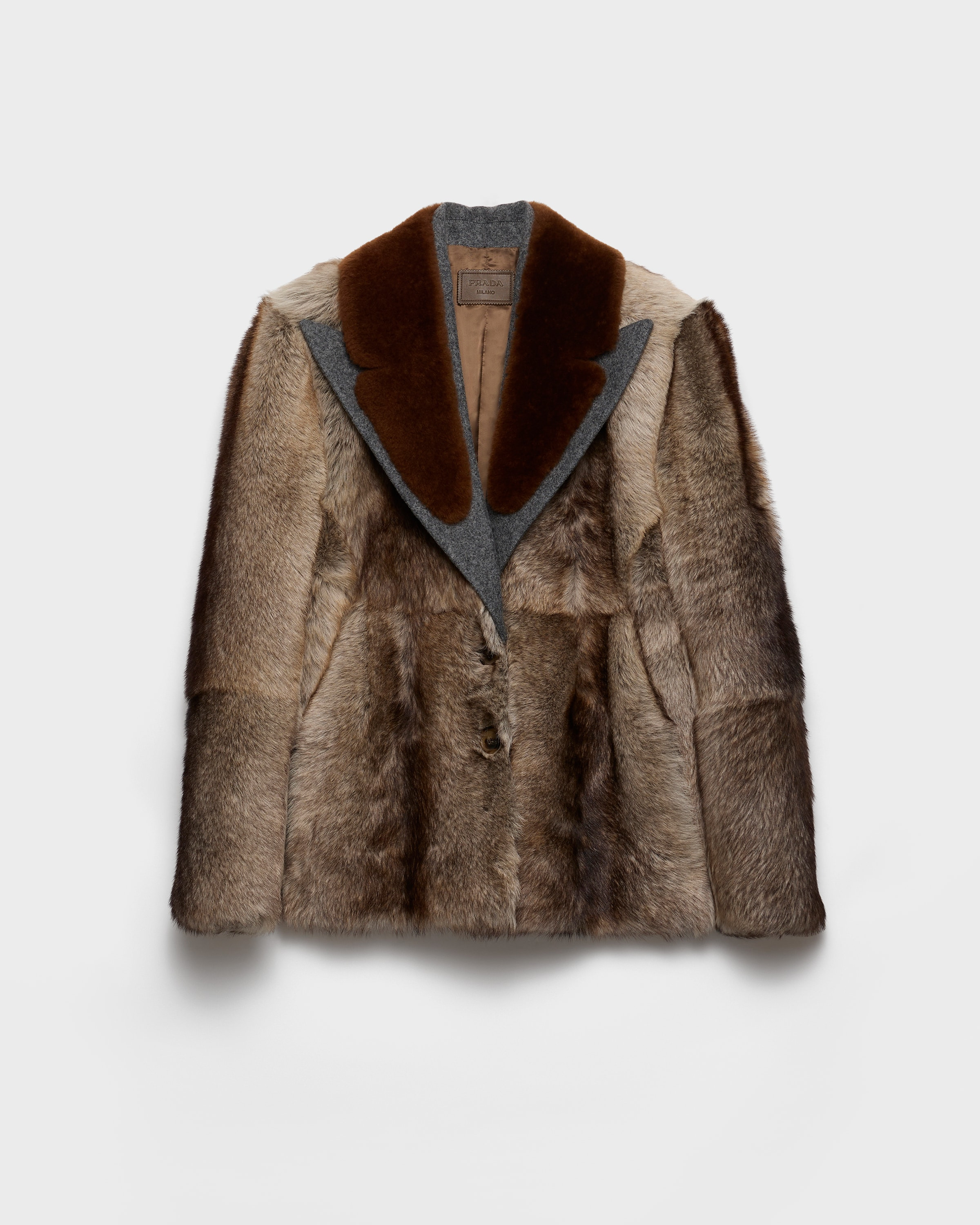 Unexpected combinations of lines and materials define this coat with a contemporary attitude. The sartorial silhouette is enriched in volume with shearling that has been dyed and treated for a soft, three-dimensional effect. The cloth collar reveals the hybrid essence of the garment, an expression of casual, unconventional elegance. - Product code: 56A218_15PF_F0572_S_OOO - Lined garment - Fitted silhouette - Button closure on the front - Straight sleeves - Inseam pockets - Cloth collar with classic notch lapel - Shearling top collar - Imported - The model is 180 cm tall and wears a size 38 Height: 74cm MATERIALS Main material: Lambskin