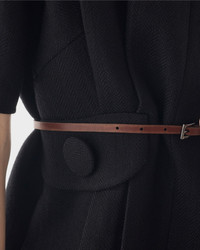 The Fall/Winter 2025 collection explores the concept of femininity and redefines its symbols, starting with the black dress. The silhouette is reimagined with new proportions, wide lines, and unique details. Made from chevron wool, this style features a boat neckline, a contrasting leather belt, and oversized buttons, while the raw-cut hem suggests an instinctive and unconventional elegance. - Product code: P3Q60K_18DE_F0002_S_OOO - Loose fit - Lined garment - Wide boat neckline - Short sleeves - Flap pockets - Center back slit - Straight hem - Leather belt - Imported - The model is 180 cm tall and wears a size 38 Height: 105cm MATERIALS Main material: 100% virgin wool