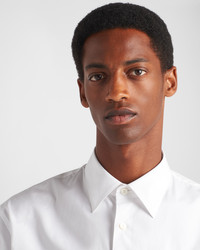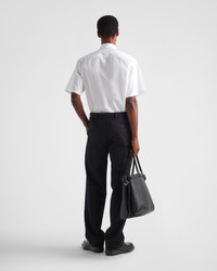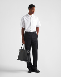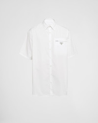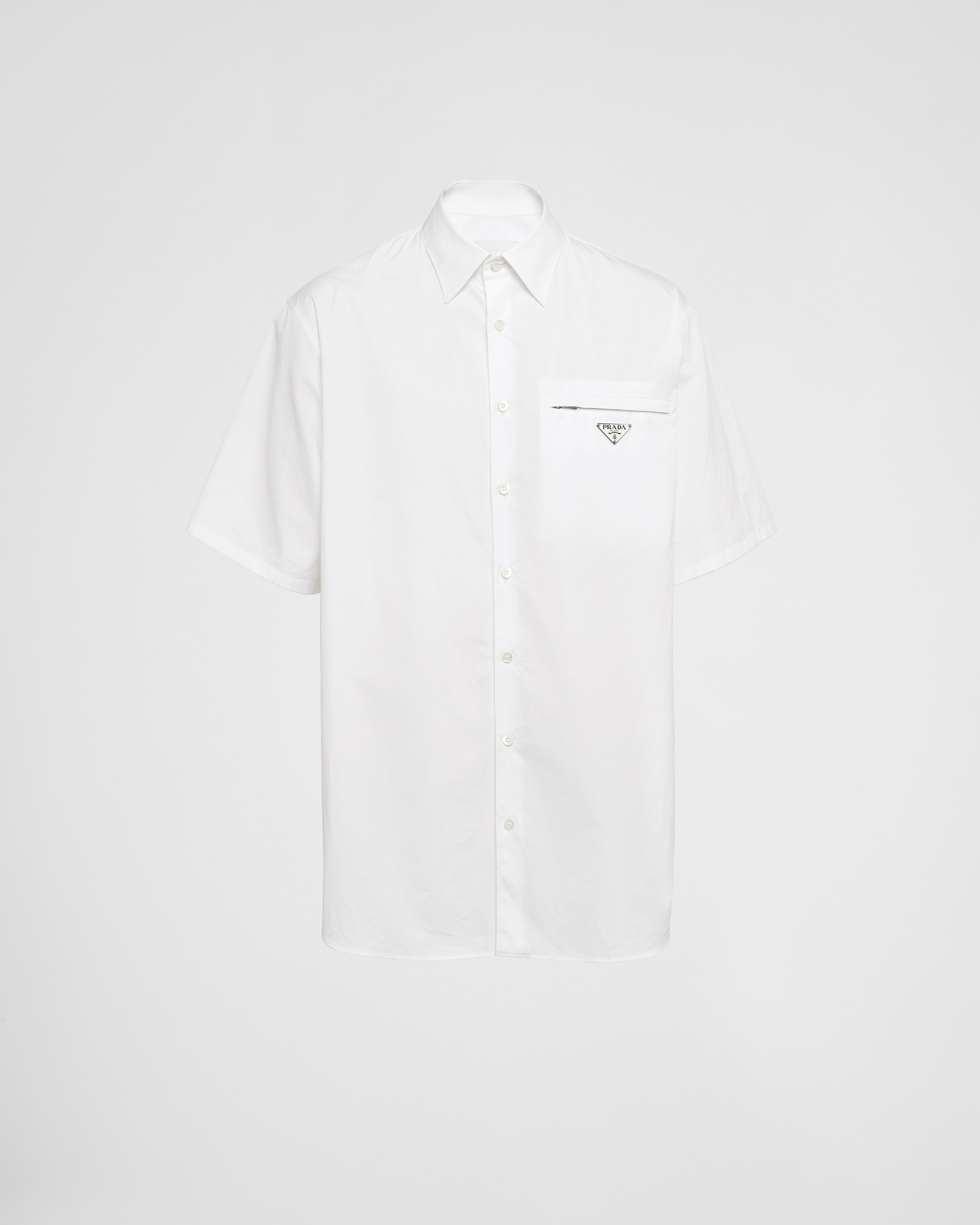 This short-sleeved cotton shirt with a boxy silhouette reveals a contemporary, minimalist design. The style combines classic details and sporty touches such as the zipper pocket embellished with the enameled metal triangle logo. - Product code: UCS503_1XV2_F0009_S_OOO - Oversized fit - Classic collar - Zippered breast pocket - Rounded hem - Mother-of-pearl button closure - Enameled metal triangle logo on the front - Imported - The model is 189 cm tall and wears a size 48 Height: 82cm MATERIALS Main material: 100% cotton