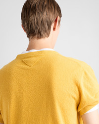 This sleek and refined short-sleeved sweater is made of cotton with a classic silhouette decorated with the iconic geometric shape of the triangle logo. - Product code: UMB946_154F_F0037_S_OOO - Plain knit - Regular fit - Ribbed knit crew neck - Normal shoulder - Ribbed knit sleeve trim and hem - Knit triangle logo - Imported - The model is 189 cm tall and wears a size 48 Height: 66cm MATERIALS Main material: 65% cotton 35% polyamide
