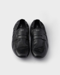 Loafers, a classic of formal style, are reinterpreted with an innovative and completely deconstructed design. The style expresses an evolution in shoe construction that favors light, soft and flexible silhouettes. These loafers made of antiqued leather have sleek lines and are decorated with the refined lettering logo. - Product code: 2DG158_7V6_F0002_F_G012 - Leather band - Screen-printed lettering logo on the upper - Lightweight rubber sole - Heel height 5 mm - Removable leather-covered insole - Imported MATERIALS Main material: Calfskin
