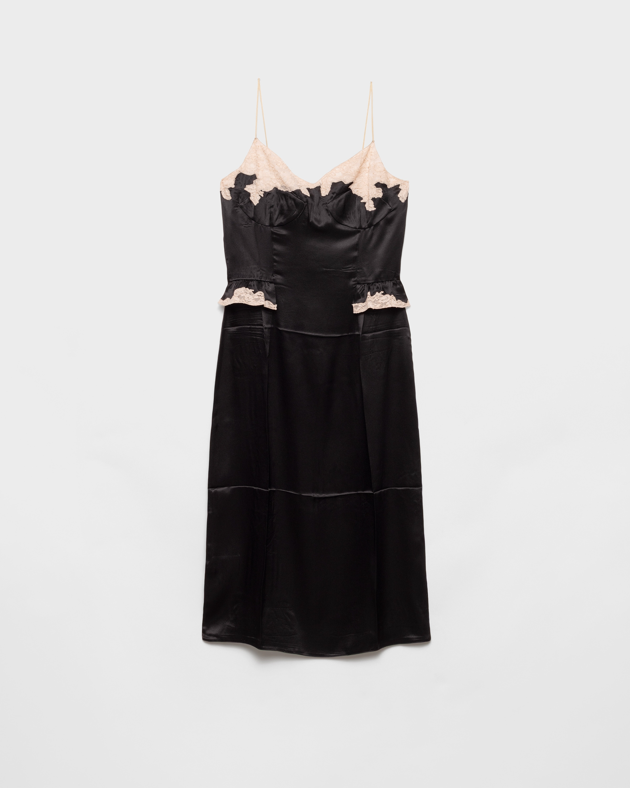 Romantic details and retro suggestions inspire this lingerie dress that combines the elegant sheen of silk and the romantic delicacy of lace. - Product code: P3Q32_170Q_F0002_S_OOO - Straight fit - Unlined - Lace-trimmed V-neck - Center back zipper closure - Sleeveless - Straight hem - Imported - The model is 180 cm tall and wears a size 38 Height: 110cm MATERIALS Main material: 100% silk
