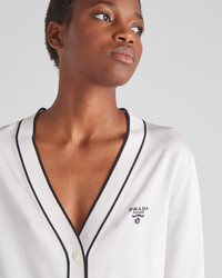 An elegant knit technique creates the delicate color contrast that trims the edges of this fine silk cardigan. The lines on the pockets and neckline accent the garment decorated with the iconic intarsia lettering logo. - Product code: P25L11_10OX_F0964_S_221 - Long sleeves - Plain stitch knit - Masculine style - Ribbed knit neckline trim -- Semi-raglan shoulder - Ribbed knit cuffs and hem - Intarsia logo - Front button closure - Welt pockets - Breast pocket - Imported Height: 60cm MATERIALS Main material: 100% recycled silk