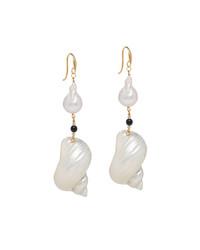 Precious simplicity. These silver earrings with timeless elegance are decorated with shells that evoke the summer. - Product code: 1JO638_2DIZ_F0164 - Silver 925 - Turbo Argystomus shells - Onyx - Rock Crystal - Baroque pearls - Imported Height: 9.15cm Width: 3cm MATERIALS Main material: 925 silver