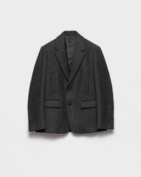 Elegant classic tailoring meets Prada's unconventional style in the design of this wool jacket. The single-breasted silhouette with an impeccable cut and details is animated by the creased effect created on the finished garment that adds a unique character to the design. - Product code: UGM365_17ZU_F0480_S_OOO - Classic fit - Notch lapel - Center vent - Two-button closure - Three-button cuffs - Flapped welt pockets - Lined garment - Knit triangle logo on the back - The creases are an intrinsic characteristic due to pressing of the finished garment. - Imported - The model is 189 cm tall and wears a size 48 Height: 75cm MATERIALS Main material: 100% virgin wool
