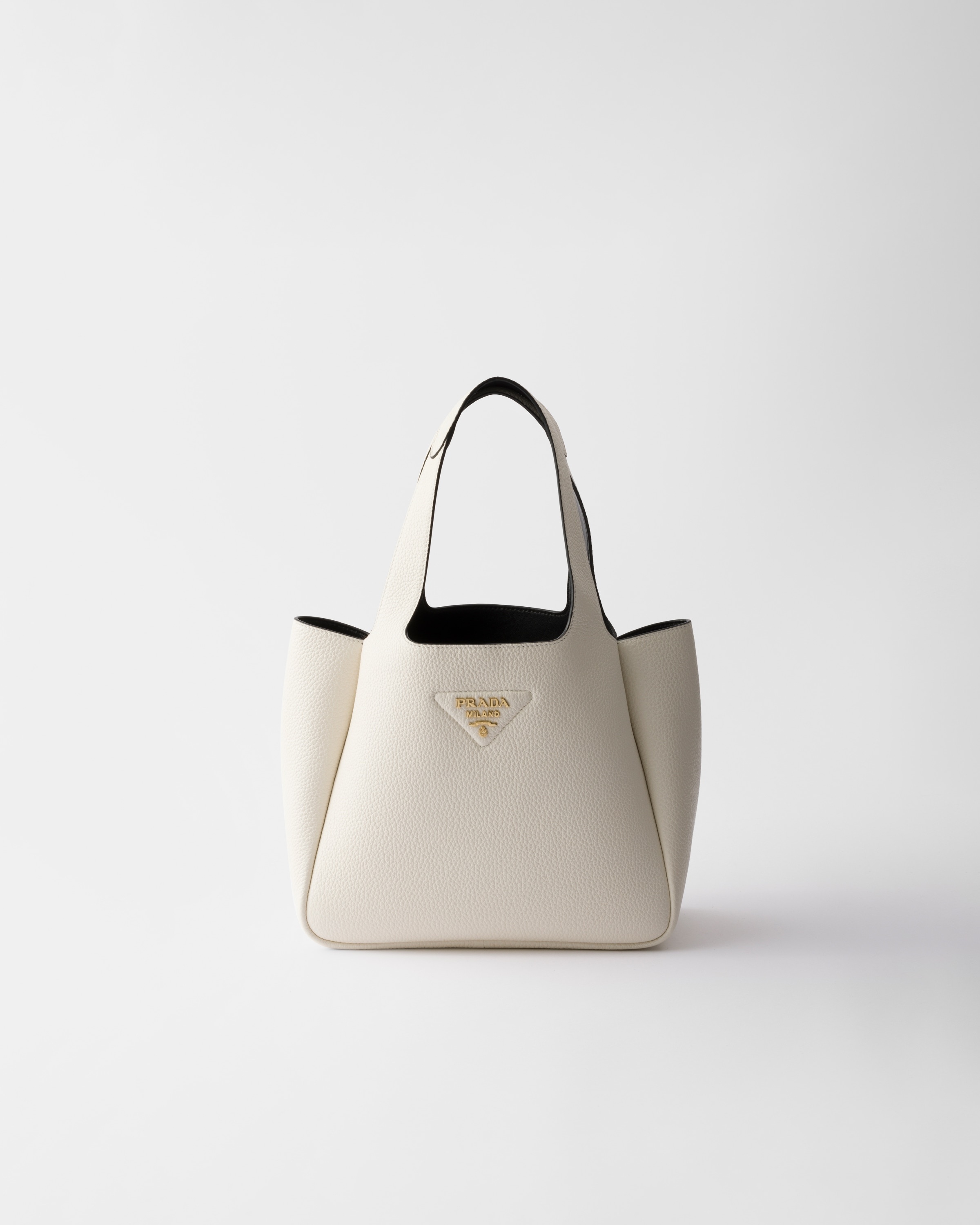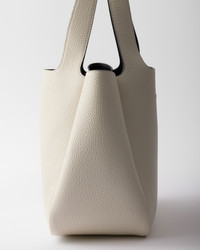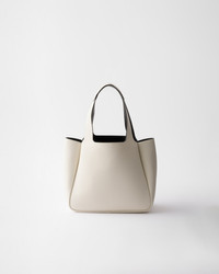 The unstructured silhouette of this leather mini bag is accentuated by the reverse stitching that gives the design a soft, rounded shape. The metal lettering logo on the front elevates the compact, modern, and sophisticated accessory. - Product code: 1BG335_2DKV_F0QO3_V_ONM - Leather handles - Metal hardware - Metal lettering logo on the front - Magnetic flap closure - Nappa leather lining with three compartments - Imported Height: 21.5cm Width: 25cm Length: 14cm MATERIALS Main material: Calfskin