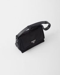 The hybrid concept pervades the Prada narrative and is translated into innovative designs with an interesting and unusual combination of materials, shapes, and functions. This flap bag with a sophisticated, feminine silhouette is reinterpreted in a technologically innovative material: Re-Nylon fabric, made of recycled plastic collected in the ocean. The padding gives the accessory a soft, contemporary look, and the adjustable leather shoulder strap allows it to be worn in different ways. For sustainable care to preserve the product's characteristics and reduce microfiber shedding, we recommend not washing the item too often. Let the product air out after every use and have it dry cleaned at a specialized ecological dry cleaners. - Product code: 1BD313_RDLN_F0002_V_OOO - Adjustable leather shoulder strap - Zipper pocket on the back - Metal hardware - Front enameled metal triangle logo - Magnetic closure - Re-Nylon lining with zipper pocket - Imported Height: 16cm Width: 23cm Length: 11cm MATERIALS Main material: Recycled polyamide