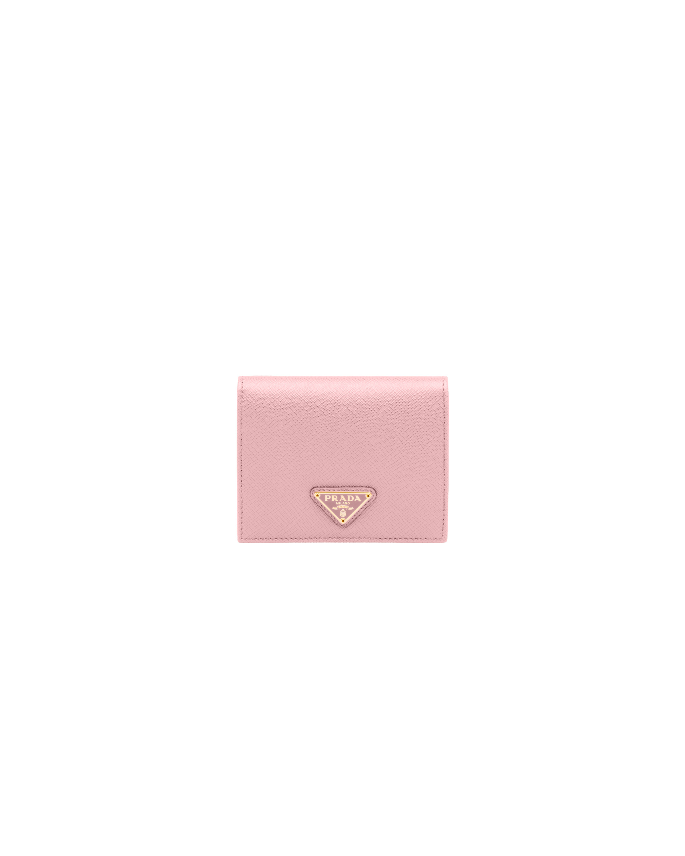 This luxurious Saffiano leather wallet is sheer elegance in a compact form. The accessory has several document pockets, credit card slots and bill compartment. Metal logo. - Product code: 1MV204_QHH_F0924 - Snap fastener - Enameled metal triangle logo - One bill compartment - Three card slots - Two internal pockets - Internal coin pocket with flap - Moire and Saffiano leather lining - Imported Height: 11.2cm Width: 8.5cm MATERIALS Main material: Calfskin