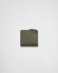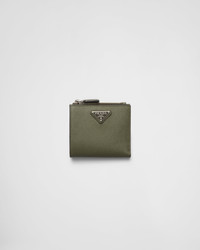 Sleek lines and the iconic texture of Saffiano leather characterize this wallet with the triangle logo on the front. The interior comes with pockets and compartments. - Product code: 2ML049_QHH_F0466 - Snap closure - Enameled metal triangle logo - Four card slots - One bill compartment - Two internal pockets - External coin pocket with zipper - Moire and Saffiano leather lining - Imported Height: 9cm Width: 10cm MATERIALS Main material: Calfskin