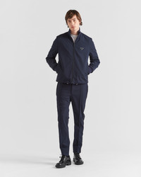 This stretch technical fabric zipper sweatshirt defined by its regular fit and stand-up collar embodies a classic attitude given a contemporary twist. The original mix of sportswear and minimalism reflects the inherent duality of Prada collections. - Product code: SGC180_11QL_F0008_S_231 - Regular fit - Knit collar - Straight sleeve - Zipper closure - Pockets with hidden zippers - Ribbed knit cuffs - Narrow shoulder - Straight hem - Elasticized drawstring - Lined and padded with recycled fabric - Enameled metal triangle logo on the front - Imported - The model is 188 cm tall and wears a size 48 Height: 65cm MATERIALS Main material: 11% elastane 89% recycled polyester