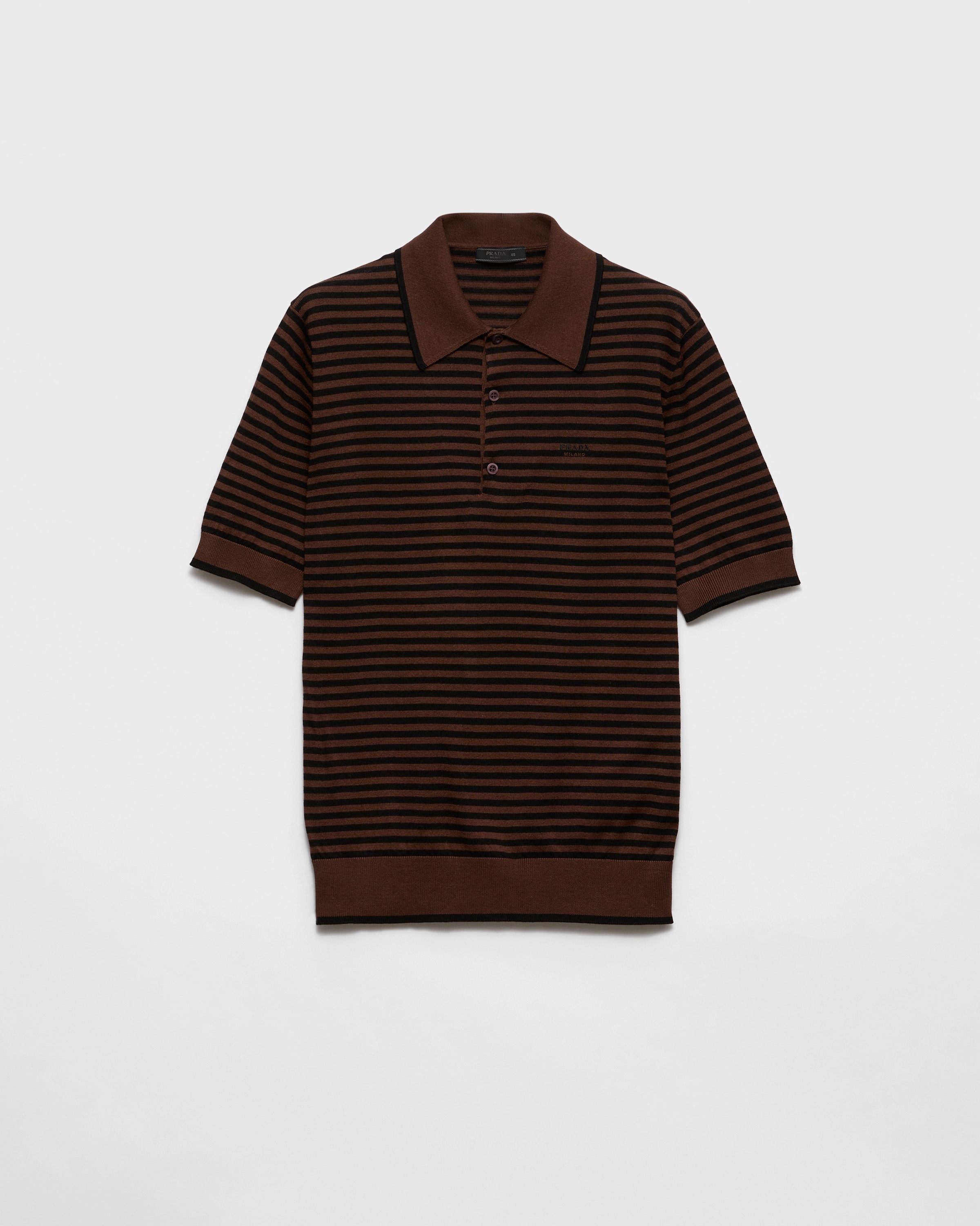 This cotton knit polo shirt is characterized by its light silhouette animated by the stripe motif. - Product code: UMF054_17FF_F0L8V_S_OOO - Plain knit - Regular fit - Polo collar - Three-button front closure - Imported - The model is 189 cm tall and wears a size 48 Height: 64cm MATERIALS Main material: 100% cotton