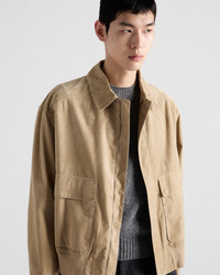 Bonded suede and cotton fabrics are chosen for this hybrid design with sophisticated allure. - Product code: UPW541_16EC_F038K_S_OOO - Unlined garment - Regular fit - Concealed zipper and button closure - Shirt-style collar - Straight sleeve and shirt-style cuffs - Patch pockets - Ribbed knit hem - Leather triangle logo on the back - Pressed finished garment - Imported - The model is 189 cm tall and wears a size 48 Height: 65cm MATERIALS Main material: Lambskin