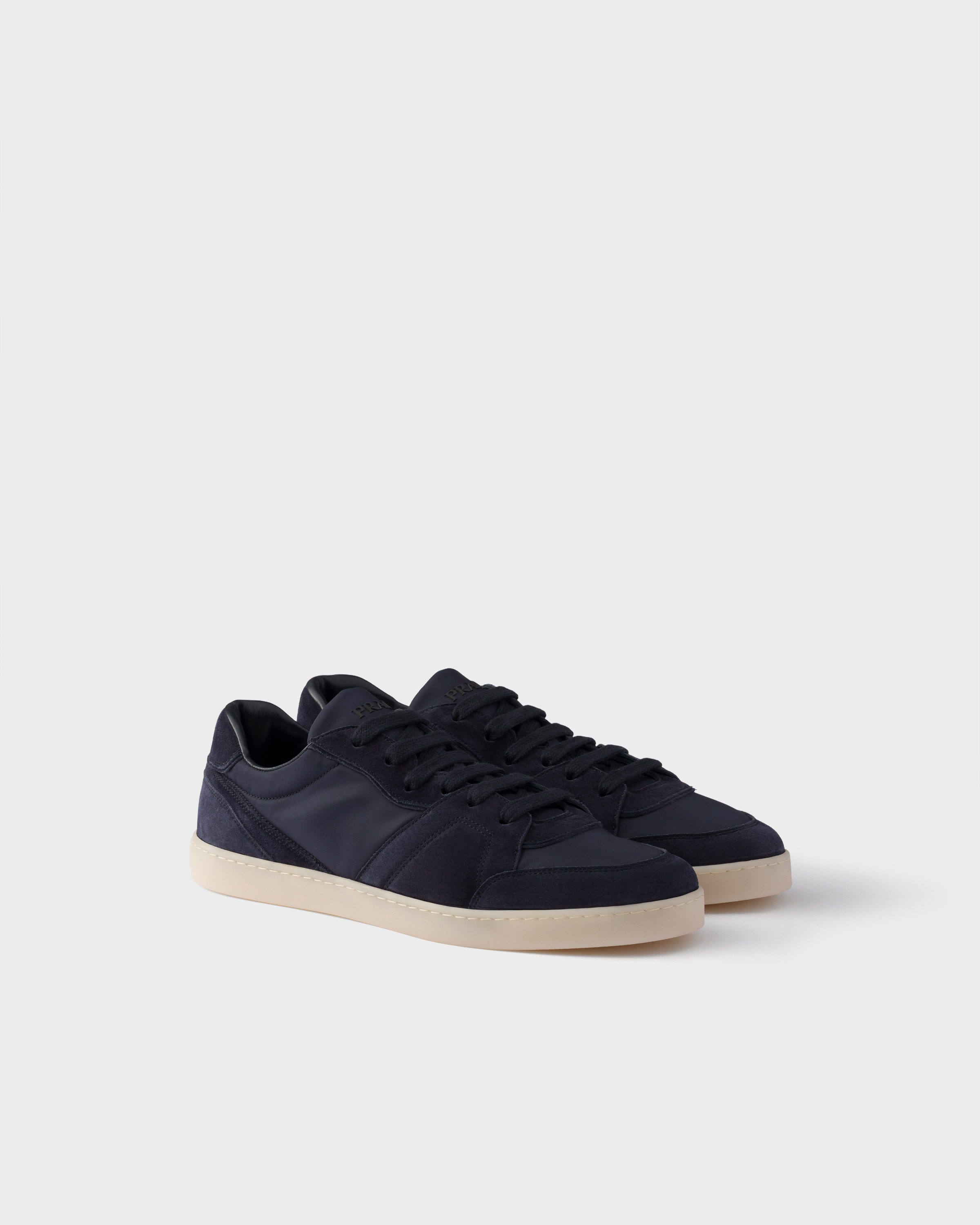 These sleek, refined sneakers combine the sporty character of Re-Nylon with the soft texture of suede. The tonal lettering logo completes the footwear with versatile, contemporary style. - Product code: 2EE442_D7R_F0008_F_G000 - Prada Milano logo embossed on the tongue - Rubber box sole - Sole height: 25 mm - Removable leather-covered insole - Imported MATERIALS Main material: Calfskin