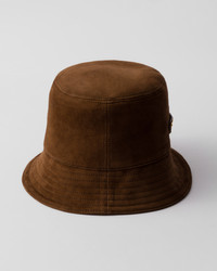 The iconic bucket hat, reinterpreted season after season, comes in suede that gives the urban accessory a refined touch. - Product code: 1HC137_008_F0324 - Enameled metal triangle logo - Cotton lining - Imported MATERIALS Main material: Lambskin