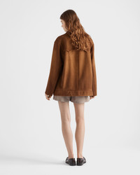 Codes belonging to different aesthetics are combined in the design of this jacket with refined style. The garment is made of suede characterized by a distressed finish that gives it vintage allure. - Product code: 58A212_1V97_F0005_S_OOO - Lined garment - Straight fit - Center button closure - Bowling collar - Straight sleeves - Wide welt pockets - Leather triangle logo on the back - Vintage treatment - Imported - The model is 178 cm tall and wears a size 38 Height: 72cm MATERIALS Main material: Lambskin