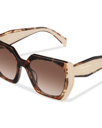 Sunglasses characterized by a distinctive rectangular silhouette and bold, chunky lines. Refined acetate layers glued to the side trim on the frame front and geometric temples create contemporary, elegant allure. Prada lettering logo. - Product code: SPR15W_E01R_F00A6_C_054 - Acetate frame front in caramel tortoiseshell + powder pink - Frame compatible with graduated lenses - 100% UVA / UVB protection - Standard Fit - Lens-nose-temple measurement : 54-19-140 mm - Article comes with dedicated packaging - Other available colors - Imported MATERIALS Acetate