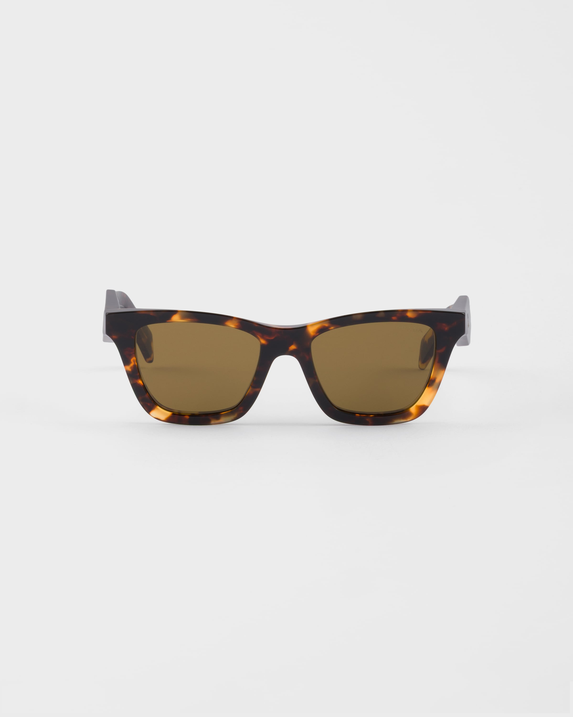 A synthesis of refinement and minimalism, these acetate sunglasses have a square silhouette with strong lines. The bold design of the temples is highlighted by the Prada logo. - Product code: SPRC07_E14L_FE09Z_C_051 - Recycled bio-acetate frame front - Color: Honey Tortoiseshell - Frame compatible with graduated lenses - 100% UVA / UVB protection - Standard Fit - Lens-nose-temple measurement : 51-18-145 mm - Article comes with dedicated packaging - Other colors available - Imported MATERIALS Acetate